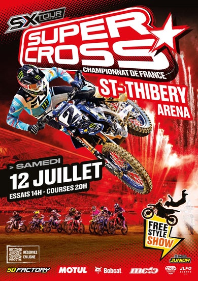 PLACES AUSSI DISPONIBLES AU GUICHET LE JOUR DE L'EVENEMENT ! La seconde manche du Championnat de France de Supercross 2025 se tiendra dans la nouvelle Arena Supercross de Saint Thibery. Ne ratez pas ce show hors du commun.